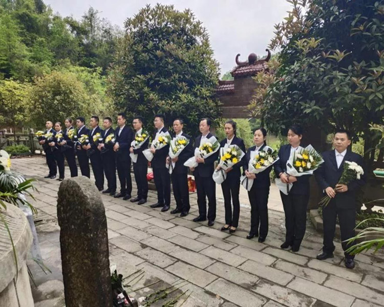 公司總經(jīng)理李政誼向烈士獻詞,表達對烈士的深切哀悼,然后帶領(lǐng)大家在紀念碑前開展了掃墓、默哀、獻花籃等活動。