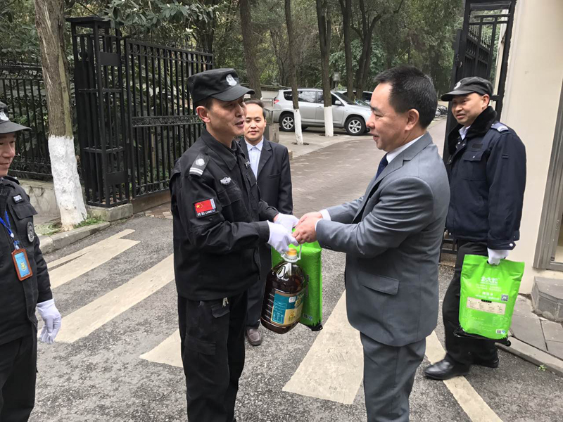 第二組由陟翔集團(tuán)股東代表李鵠帶隊,保安大隊長吳長沂、劉帆、胡申亮隨同,主要對省政府、北京路華能貴兩個站點進(jìn)行了慰問和祝福。