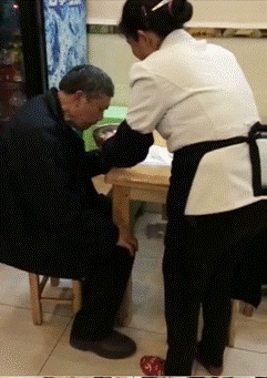 2016年3月6日晚,遵義蝦子張六羊肉粉普陀路店出現(xiàn)了溫馨的一幕:粉店員工張正仙與一位吃粉的老人并不認(rèn)識,當(dāng)時老人與一名老阿姨一起來到粉店,進(jìn)來時張大姐就注意到老人走路不太方便。粉端上桌后,與老人一起來的老阿姨就離開了,老人用右手顫顫巍巍地夾起粉朝嘴里送,很是費(fèi)勁,張大姐看著有點(diǎn)不忍,就走上前去問老人是否需要幫忙。在征得老人同意后,她像照顧自家的老人一樣,站在老人面前,左手端著羊肉粉,耐心地喂老人,擔(dān)心熱湯熱粉燙到老人,張大姐一邊吹冷一邊喂,慢慢的將粉喂完后,才繼續(xù)忙自己的工作。