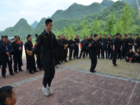 二、此次活動邀請了監(jiān)管機關(guān)及客戶單位共17家到場觀摩指導(dǎo)。分公司經(jīng)理黃水波向蒞臨的各級領(lǐng)導(dǎo)和來賓致歡迎詞,對他們的到來表示熱烈的歡迎和由衷感謝。室外科目為跳繩、接力賽、拔河三個項目。跳繩每隊為3名隊員,記集體總成績,各大、中隊精心挑選出各自跳繩尖子,積極為參賽人員吶喊、助威,一個個參賽的帥小伙瞬間變成了蹦蹦跳跳的“小女生”。接力賽為6乘50米,各中隊長抽選運動健將,為著各自的榮譽和不服輸勁頭在賽場上拼命沖刺。最激烈的當(dāng)數(shù)拔河比賽了,各參隊每隊為10人,分為淘汰賽、半決賽和決賽,各大、中都將“大塊頭”、“大胖墩”推上賽場,隨著裁判員的一聲哨音,現(xiàn)場仿佛炸開了鍋,在旁觀加油鼓勁的人員似乎比拔河人員更賣力,邀請到的客戶單位領(lǐng)導(dǎo)也都在為各自派駐中隊參賽隊員加油,活動氛圍瞬時達到頂峰。