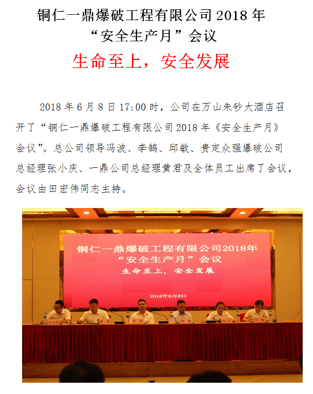 > 銅仁一鼎爆破工程有限公司2018年 “安全生產(chǎn)月”會議 生命至上,安全發(fā)展